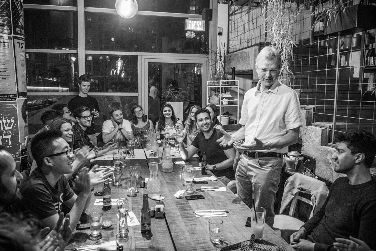 At the end of May 2017, 23 MSc Entrepreneurship students, along with Progamme Director Simon Hulme, travelled to Tel Aviv to discover the Israeli startup ecosystem. Most of the students flew in over the weekend in order to be in Tel Aviv to attend an informal welcome dinner. The sight of the setting sun at Tel Aviv beach welcomed us and filled our hearts with joy for the week ahead. At the restaurant, Simon welcomed us all and set the tone for an exciting week.