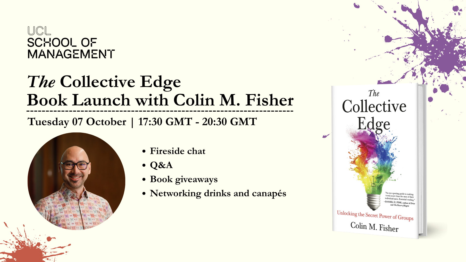 Earlier this month, UCL School of Management's Research Communications team had the pleasure of speaking with Associate Professor and MRes/Phd in Management Programme Director Colin M. Fisher, about his groundbreaking new book The Collective Edge: Unlocking the Secret Power of Groups, which was recently published by Simon & Schuster. To mark this remarkable achievement, UCL School of Management will be hosting the official launch of The Collective Edge on Level 50, One Canada Square, Canary Wharf.