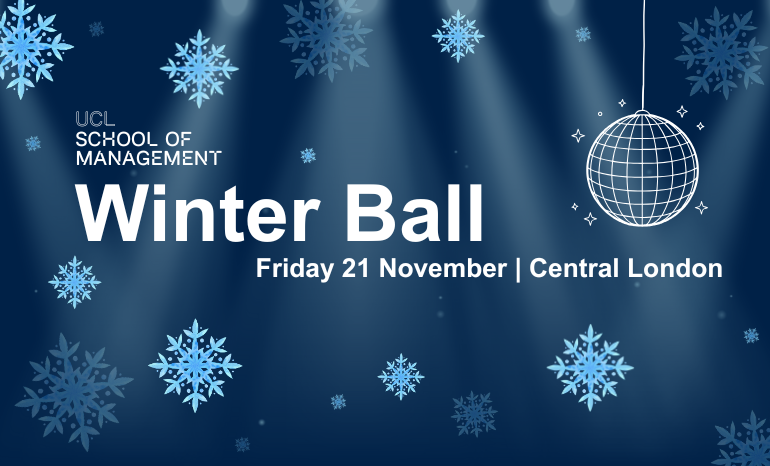 The wait is over, the most anticipated student event of the year is back this November and is bigger than ever! UCL School of Management invites you to join us in Central London for our 2025 Winter Ball on Friday 21 November. Open to all UCL School of Management, expect an evening filled with great music, canapes and drinks and make unforgettable memories as students from across all programmes come together to celebrate winter in style.