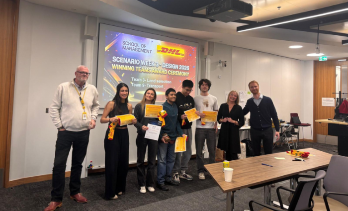 90 MSci Management Science students recently completed Scenario Week 2026, an intensive 5-day design sprint where teams developed implementable solutions to real operational challenges from DHL’s Supply Chain. Led by UCL School of Management Lecturer and Head of Executive Coaching Lorenzo Todorow, the week saw students move from problem framing on Monday to presenting polished prototypes to DHL executives by Friday.